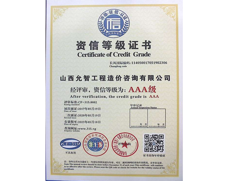 資信等級證書
